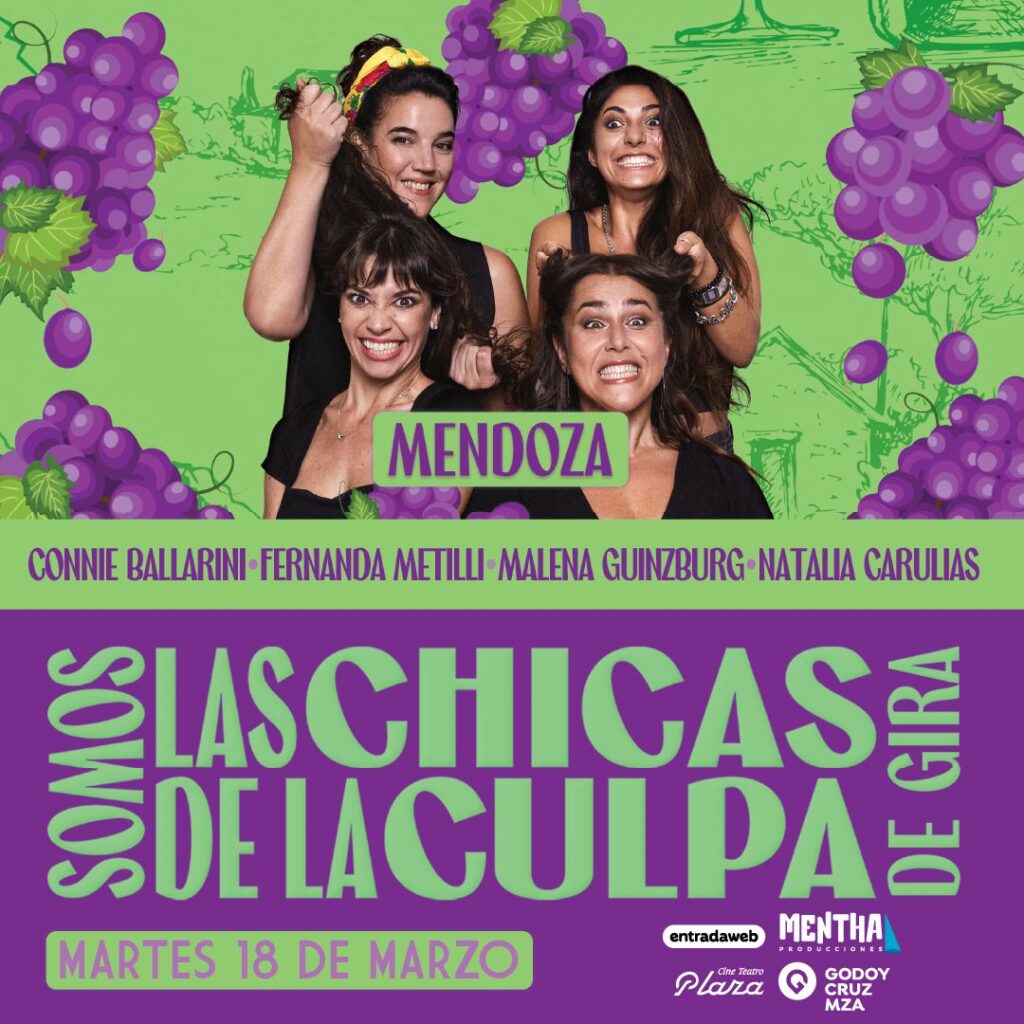 El exitoso espectáculo de humor “Somos Las Chicas de la Culpa” aterriza en Mendoza para brindar una noche cargada de risas y diversión. La cita imperdible será el martes 18 de marzo a las 19:00 hs. en el Cine Teatro Plaza de Godoy Cruz, un escenario que se prepara para recibir a cuatro de las comediantes más destacadas del momento: Connie Ballarini, Malena Guinzburg, Natalia Carulias y Fernanda Metilli.