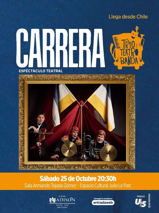 En “Carrera”, la compañía nos invita a recorrer la vida del militar y político chileno José Miguel Carrera desde su ascenso al poder, con apenas 26 años, en 1811 cuando se autoproclama Director Supremo y General en Jefe del Ejército, hasta su fusilamiento en Mendoza, hasta su trágico fusilamiento en Mendoza diez años más tarde.