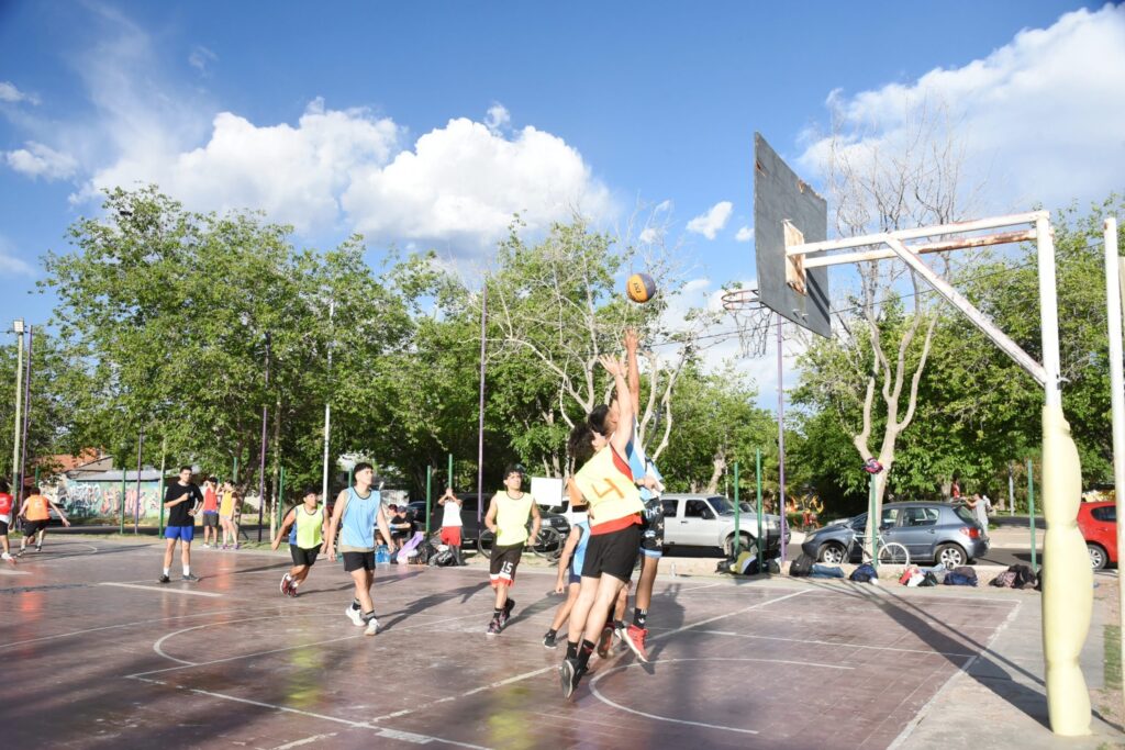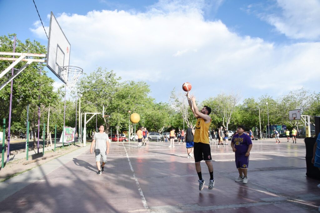 El Playón Municipal Dorrego fue el escenario para una nueva edición de la Liga Cacique, el evento que combina música, improvisación y básquet.