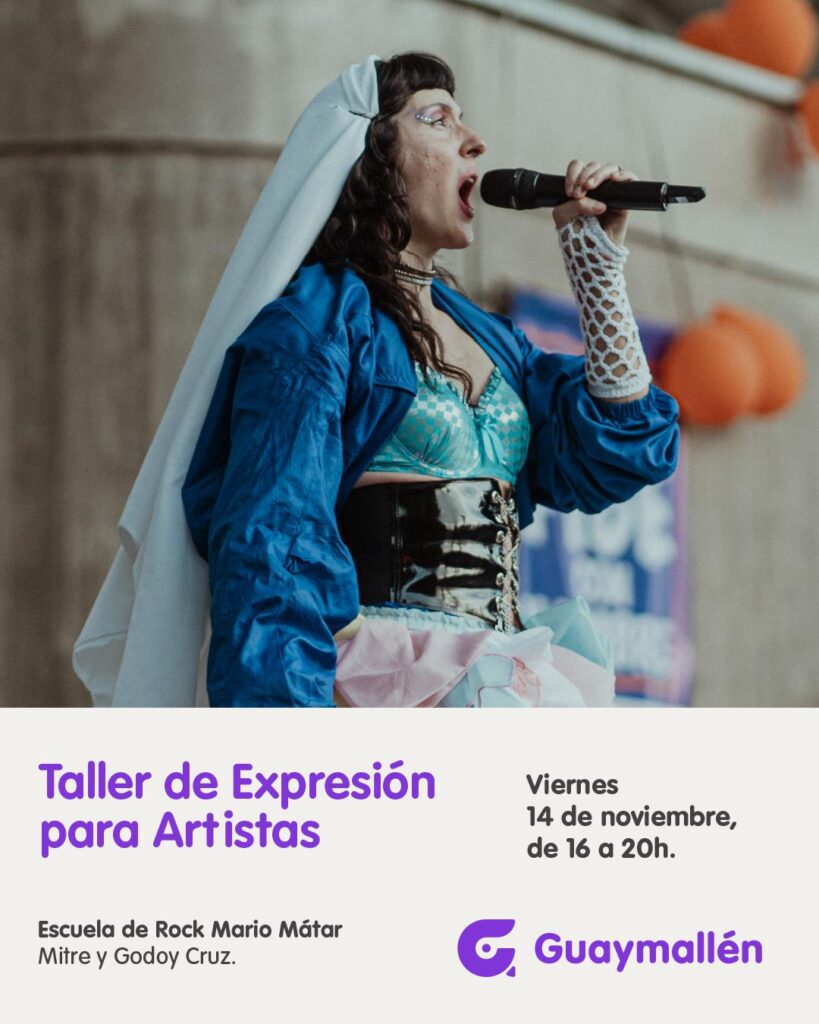 La Municipalidad de Guaymallén invita a participar del Taller de Expresión para Artistas, coordinado por Lucía Miremont. La actividad se realizará en una clase intensiva el viernes 14 de noviembre, de 16 a 20 hs., en el auditorio Goy Ogalde de la Escuela de Rock Mario Mátar (Mitre y Godoy Cruz, San José).