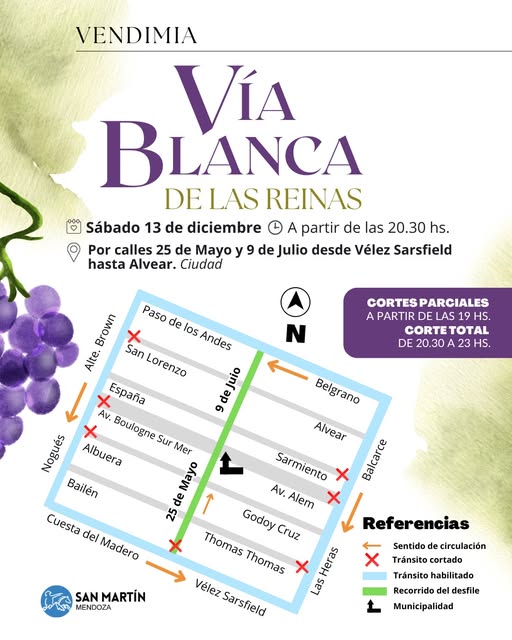 El departamento de Gral. San Martín se prepara para vivir mañana sábado, desde las 20.30 hs., una nueva edición de la tradicional Vía Blanca de Las Reinas, que volverá a convocar a miles de vecinos y turistas para disfrutar del paso de las soberanas distritales.