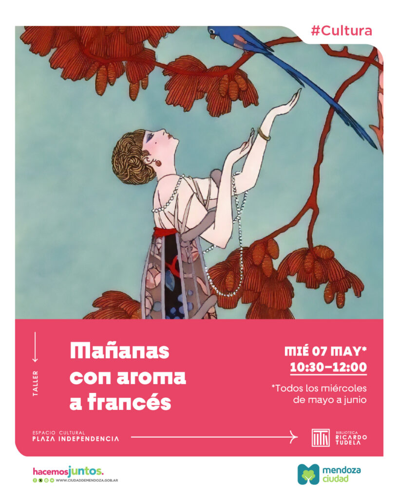 La Biblioteca Ricardo Tudela invita al taller “Mañanas con aroma a francés”, dictado por la profesora María Milagros Berrino Noseda. La propuesta comenzará este miércoles 7 y se extenderá durante todos los miércoles de mayo y junio, de 10.30 a 12h.