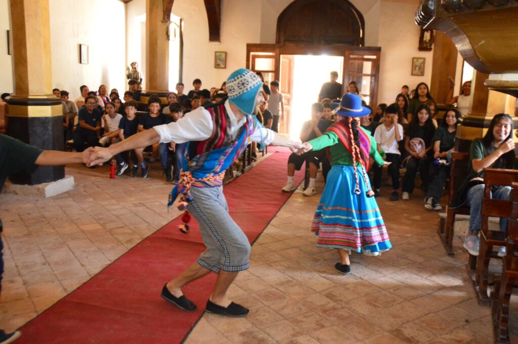 La actividad se desarrolló en un espacio patrimonial del distrito y permitió que estudiantes compartieran una experiencia cultural fuera del ámbito habitual de clases, con participación activa durante el espectáculo.