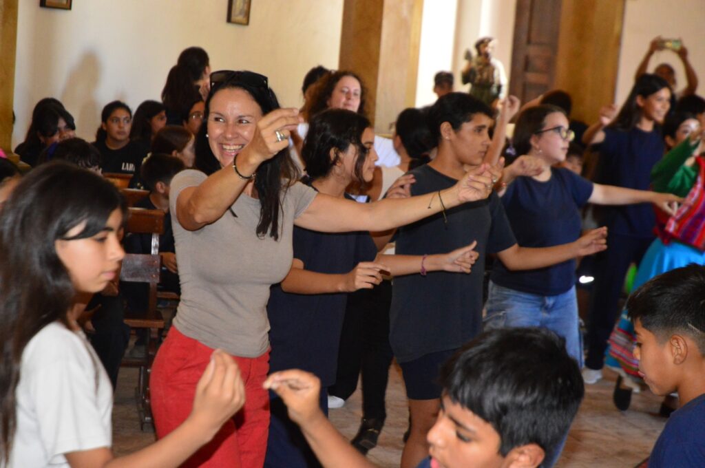 La propuesta estuvo a cargo del músico Víctor Hugo Cortez y combinó música en vivo con instancias didácticas de danza y expresión folclórica, en un formato pensado para el público escolar.