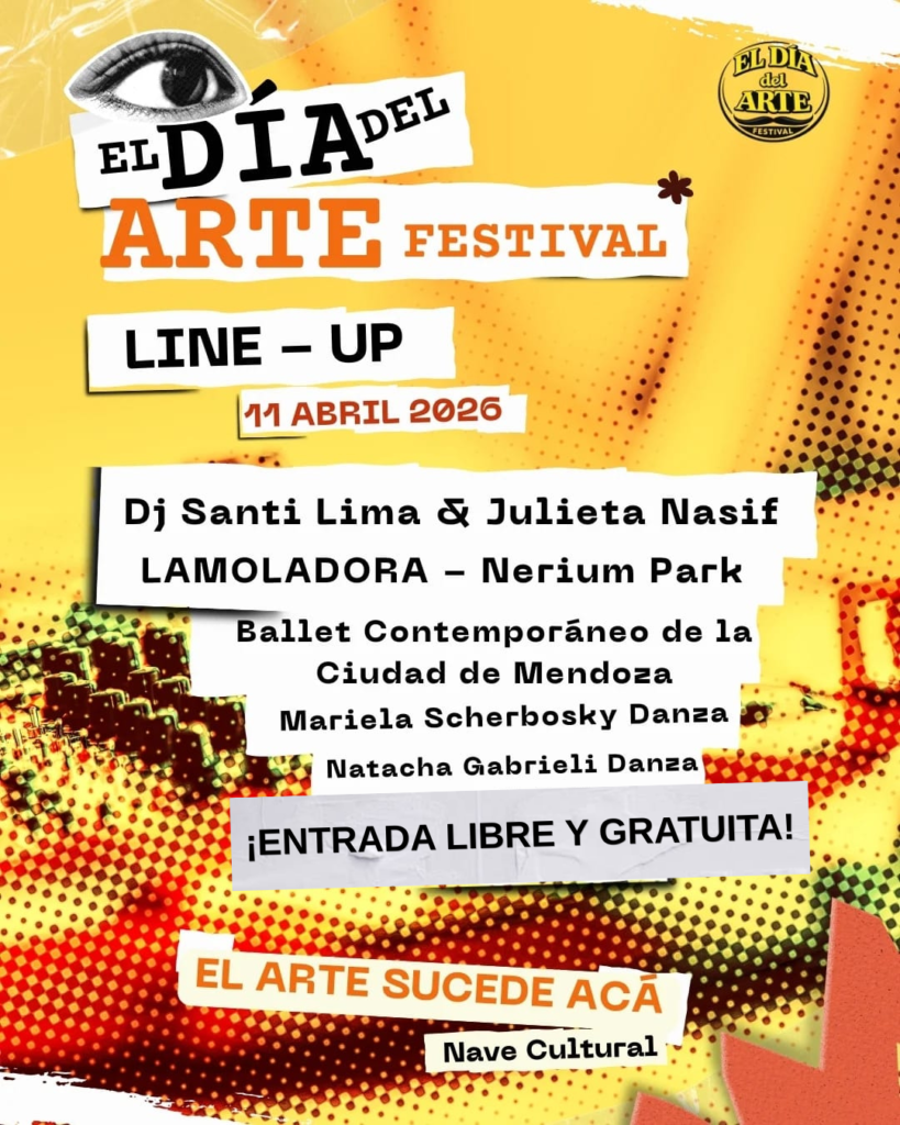 El próximo sábado 11 de abril, desde las 16 hs., la Nave Cultural (Ciudad) será sede de la primera edición de El Día del Arte, un festival multidisciplinario que reunirá distintas ramas de la escena contemporánea local, incluyendo música, DJ sets, artes visuales, danza, teatro, audiovisual y diseño, convocando a artistas, creadores y público en una jornada dedicada a visibilizar la producción actual. La propuesta tendrá su gran cierre al aire libre en la Explanada Este, con un show del ensamble de percusión LAMOLADORA y un DJ Set a cargo de Santi Lima (New Rock Club) y Julieta Nasif, en un espacio que además contará con patio gastronómico y feria. Esta actividad será con entrada libre y gratuita, al igual que gran parte de la programación, consolidando una propuesta abierta, accesible y pensada para toda la comunidad.