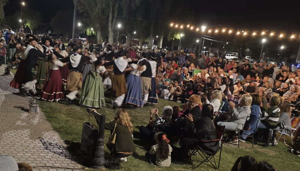 Más de 380 bailarines en escena dieron vida a una propuesta folclórica de gran nivel, que combinó la destreza artística con el amor por las raíces nacionales. El show contó con la presencia del recitador gauchesco Rodrigo Aballay y la actuación del reconocido grupo musical “Renacientes”, que aportó ritmo y emoción a la velada.