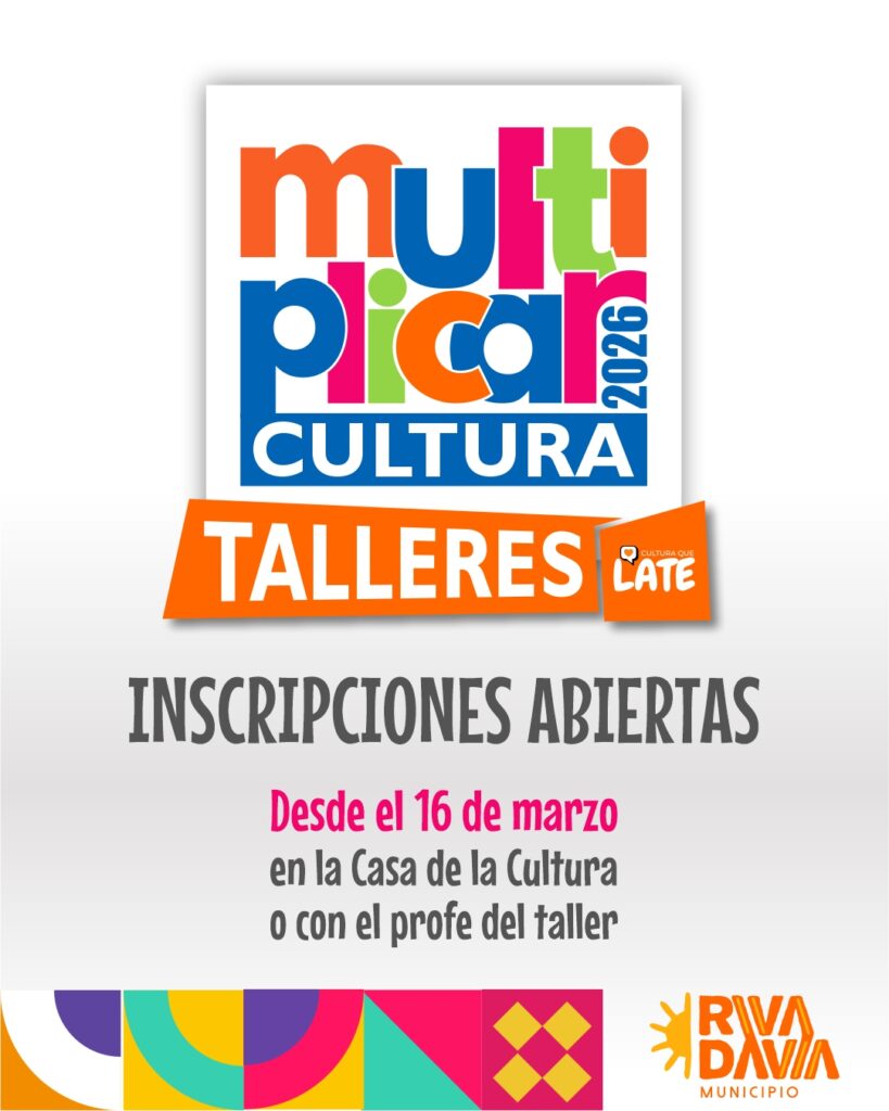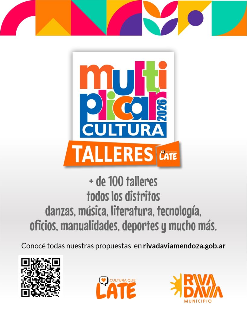 La Municipalidad de Rivadavia, a través de su Dirección de Cultura, anuncia la apertura de inscripciones para el ciclo lectivo 2026 de sus Talleres Culturales y de Oficios. A partir del 16 de Marzo e inicio de los cursados desde el 6 de Abril, los vecinos podrán sumarse a una oferta académica que incluye más de 100 disciplinas en talleres, distribuidas en todo el territorio departamental.