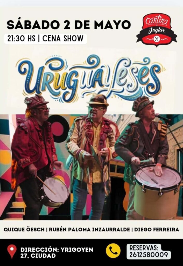 El próximo sábado 2 de mayo, la Ciudad de Mendoza se prepara para recibir una propuesta artística que promete trasladar el pulso de los tambores rioplatenses al escenario local. El grupo Uruguayeses se presentará en La Cantina del Juglar, el espacio cultural ubicado en calle Yrigoyen 27, en una velada que combinará música en vivo con una propuesta gastronómica integral bajo el formato de cena show.