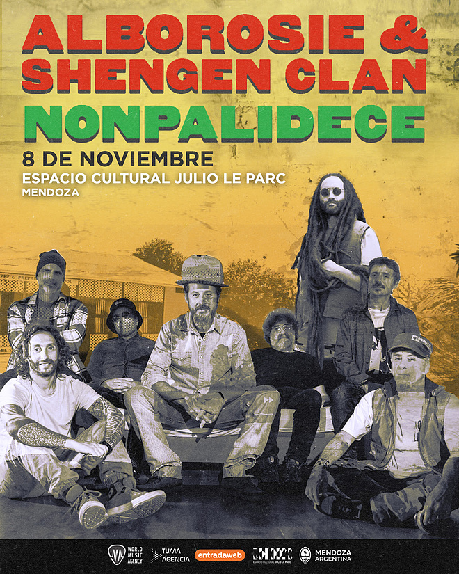 El sábado 8 de noviembre, a partir de las 20 hs., el Espacio Cultural Julio Le Parc (Mitre s/n y Godoy Cruz, Guaymallén) será escenario de un encuentro imperdible: Nonpalidece y Alborosie & Shengen Clan se unen en una velada de reggae al aire libre que promete pura vibra positiva y una fiesta inolvidable. El show será apto para toda la familia, con entrada gratuita para menores de 12 años y estacionamiento sin costo.