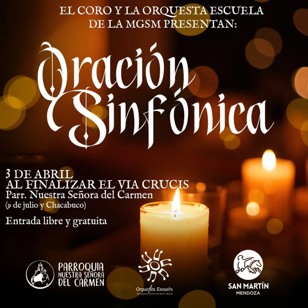 Este Viernes Santo, la comunidad de General San Martín podrá disfrutar de una propuesta artística especial, que invita a la reflexión y la espiritualidad a través de la música. Se trata de Oración Sinfónica, un concierto que tendrá lugar este 3 de abril a las 21:30 horas en la Parroquia Nuestra Señora del Carmen, ubicada en la intersección de calles 9 de Julio y Chacabuco.