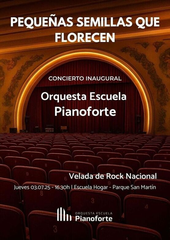 La Fundación Pianoforte presenta el primer concierto oficial de la Orquesta Escuela Pianoforte con una velada inolvidable dedicada al rock argentino. La velada contará con la participación del coro de niños compuesto por estudiantes de la Escuela Hogar, quienes interpretarán clásicos del repertorio nacional junto a la banda profesional de la Orquesta Pianoforte.