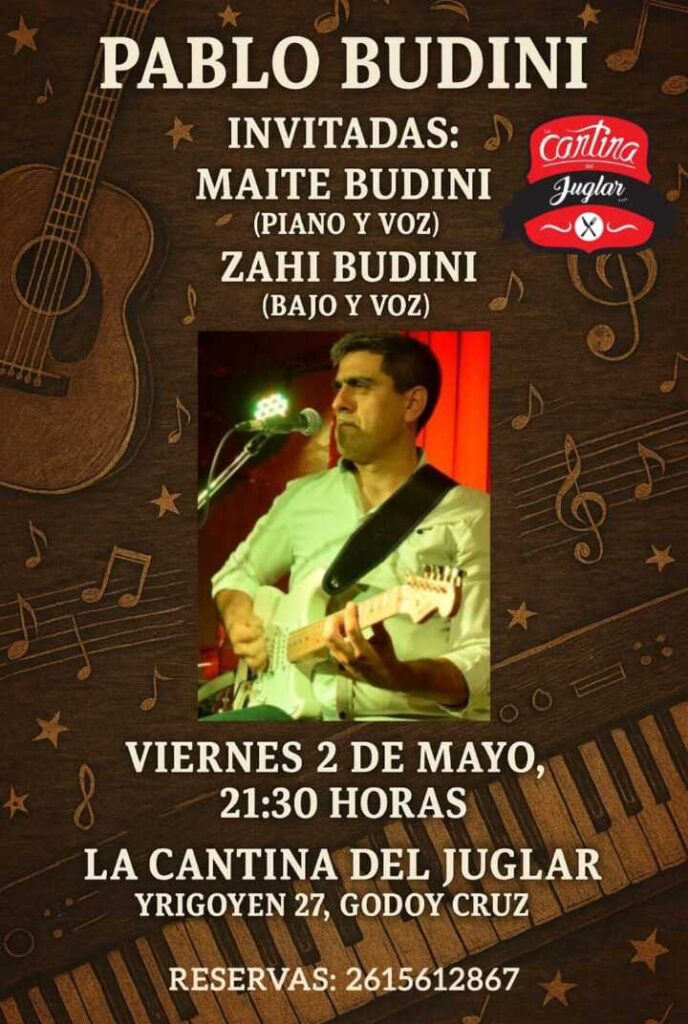 Y los encargados de invadir el ambiente con música serán Pablo Budini, junto a Maite Budini en Piano y Voz, y Zahi Budini en Bajo y Voz.
