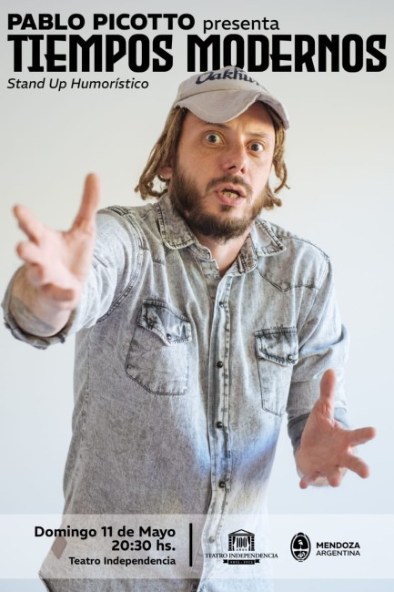 “Tiempos modernos” se llama el nuevo espectáculo de Pablo Picotto. El stand up humorístico subirá al escenario del Teatro Independencia este domingo 11 de mayo, a las 20.30 hs.. Las entradas ya están a la venta en https://www.entradaweb.com.ar/evento/f62bf3fc/step/1 o en la boletería del teatro (Chile y Espejo, Ciudad).