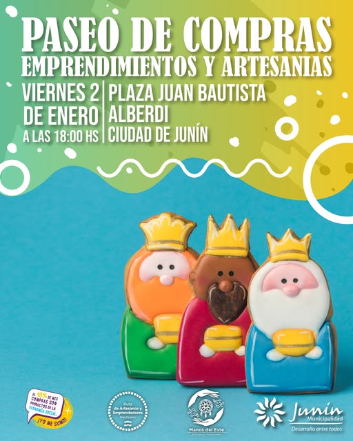 La Ciudad de Junín invita a vecinos y visitantes a disfrutar de una propuesta pensada para toda la familia con la realización del Paseo de Compras, Emprendimientos y Artesanías, que tendrá lugar el viernes 2 de enero desde las 18.00 hs., en la Plaza Juan Bautista Alberdi.