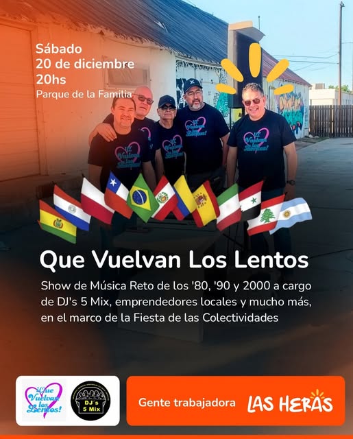 La Fiesta de las Colectividades de Las Heras suma una propuesta especial para los amantes de la música del recuerdo. El sábado 20 de diciembre, a partir de las 20 hs.., el Parque de la Familia será escenario del show “Que vuelvan los lentos”, una invitación a revivir los clásicos que marcaron las décadas del 80, 90 y comienzos de los 2000.