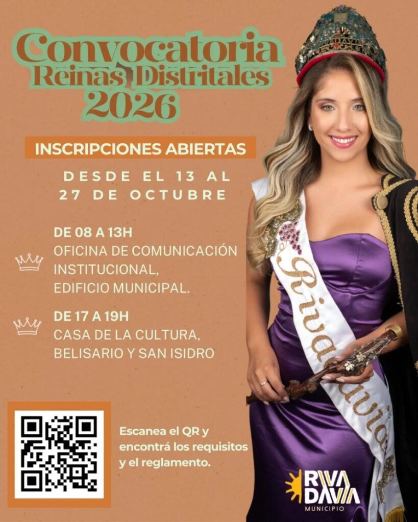 La Municipalidad de Rivadavia abre oficialmente las inscripciones para todas aquellas jóvenes que sueñan con representar a su distrito y ser protagonistas de la próxima fiesta departamental.