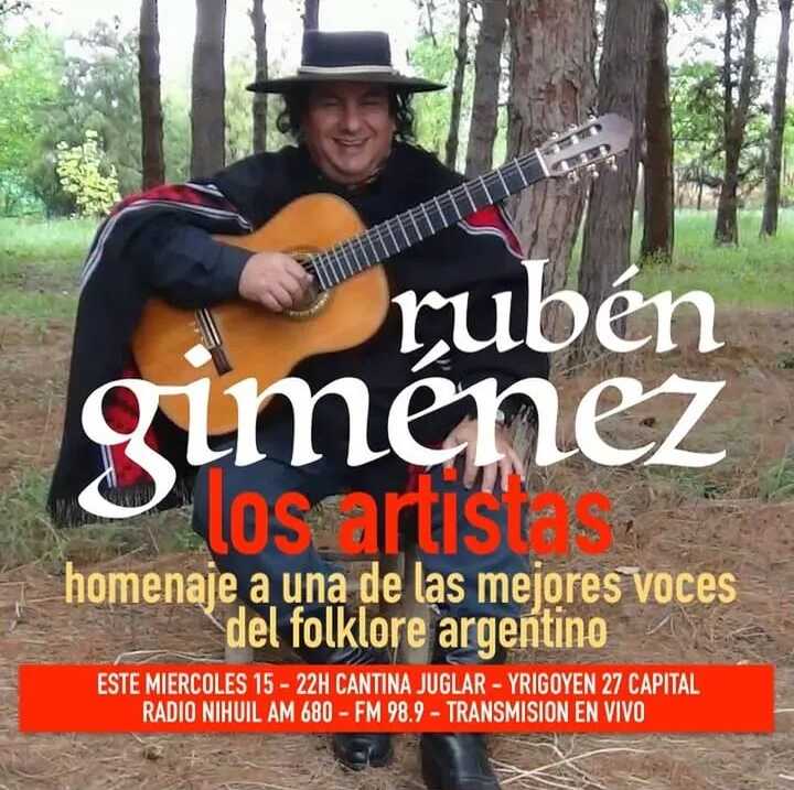 Este miércoles 15 a las 22 horas, Cantina Juglar será el escenario de un emotivo reconocimiento a Rubén Giménez, destacado exponente del folklore argentino. Bajo el título “Los Artistas”, el encuentro rendirá homenaje a una de las voces más representativas y queridas del género tradicional.