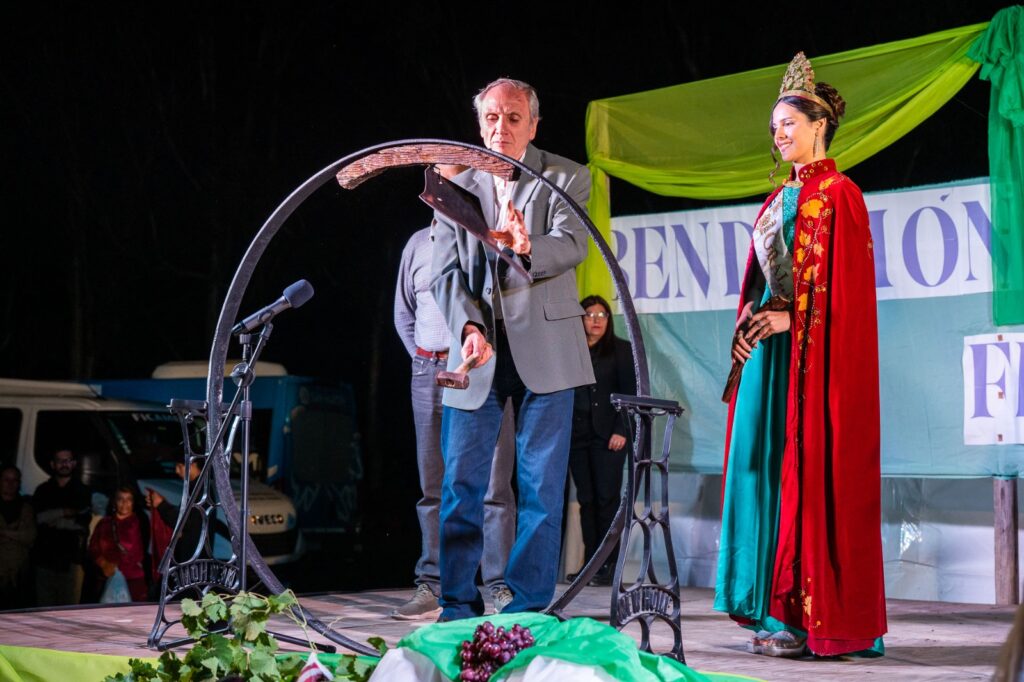El golpe de rejas y el brindis se hicieron con la presencia de José Baigorria, un viñatero del lugar, que acompañó a las autoridades y a las reinas en ambos actos.