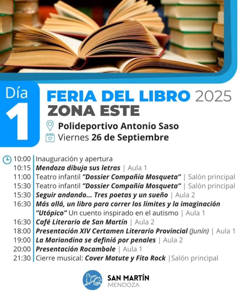 Con estas figuras y muchas más, San Martín vivirá tres días de literatura, música, ilustración y pensamiento crítico, invitando a vecinos y vecinas a descubrir nuevas lecturas, encontrarse con autores y disfrutar de un evento cultural de enorme relevancia para la provincia.