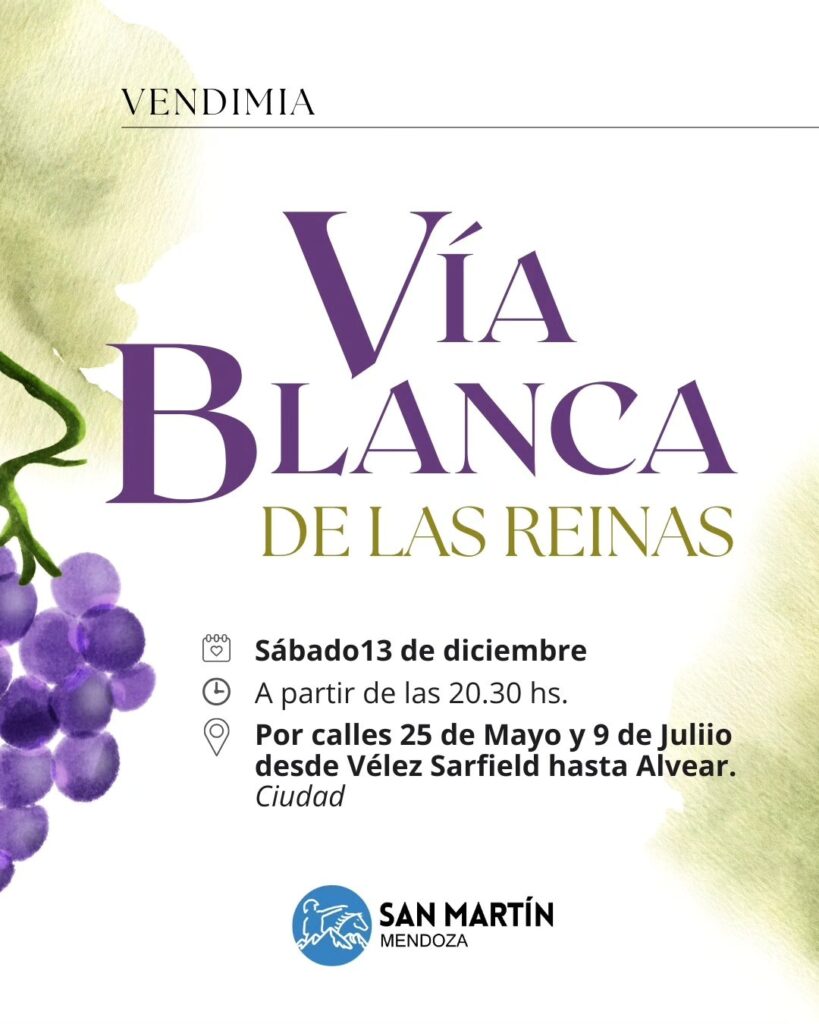 El departamento de San Martín vive una nueva temporada de Vendimia y se prepara para celebrar tres de sus eventos más representativos: la Vía Blanca de las Reinas, la Bendición de los Frutos y la esperada Vendimia Departamental. Cada encuentro propone compartir tradiciones, identidad y el espíritu festivo que caracteriza a la región.