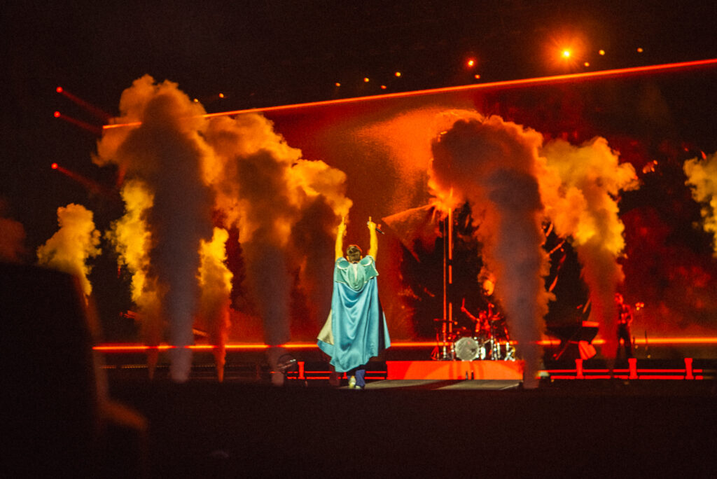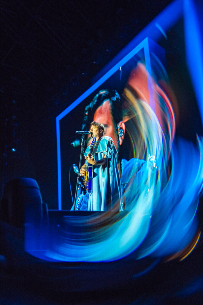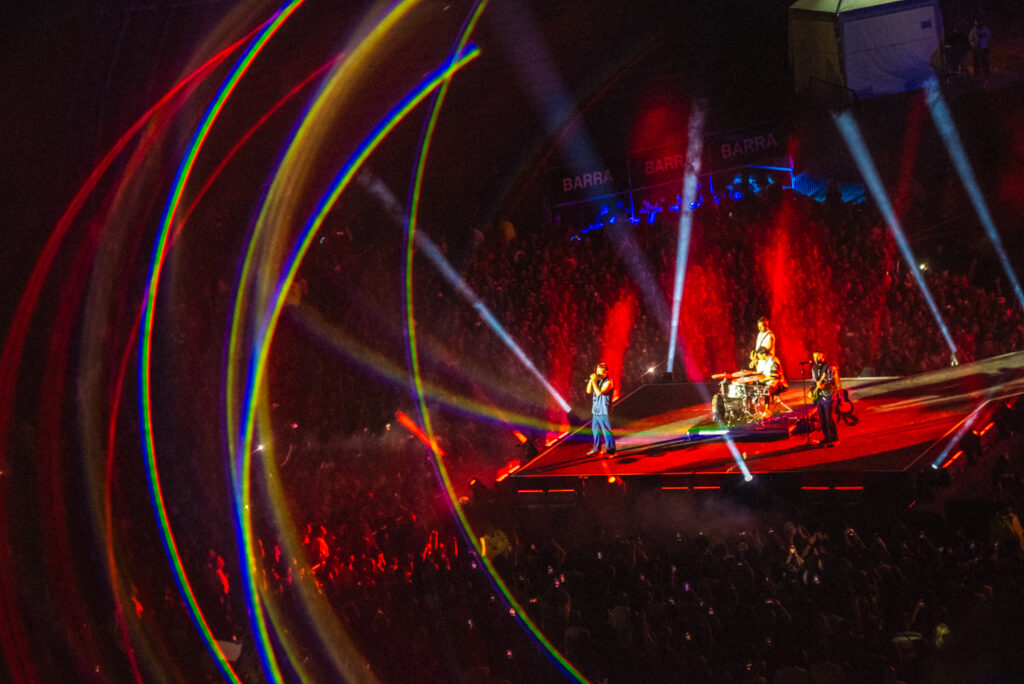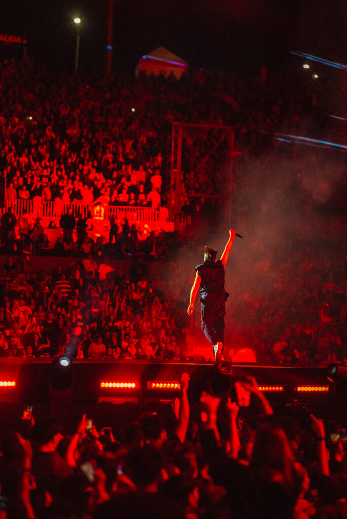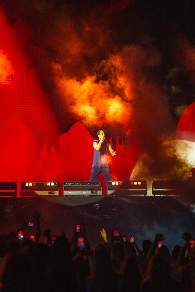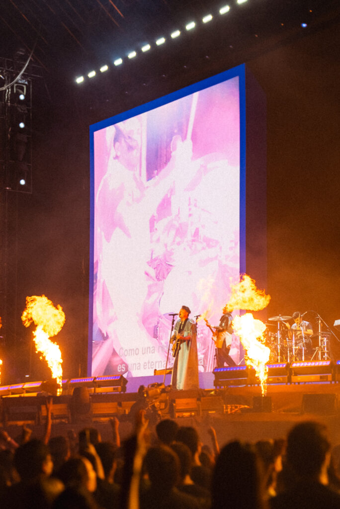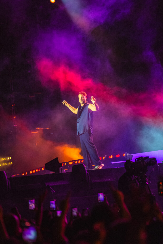 La puesta en escena fue uno de los grandes protagonistas de la noche. Un escenario de gran dimensión, pantallas envolventes, luces dinámicas y una narrativa audiovisual en tiempo real acompañaron cada momento del recital, consolidando una experiencia de nivel internacional.