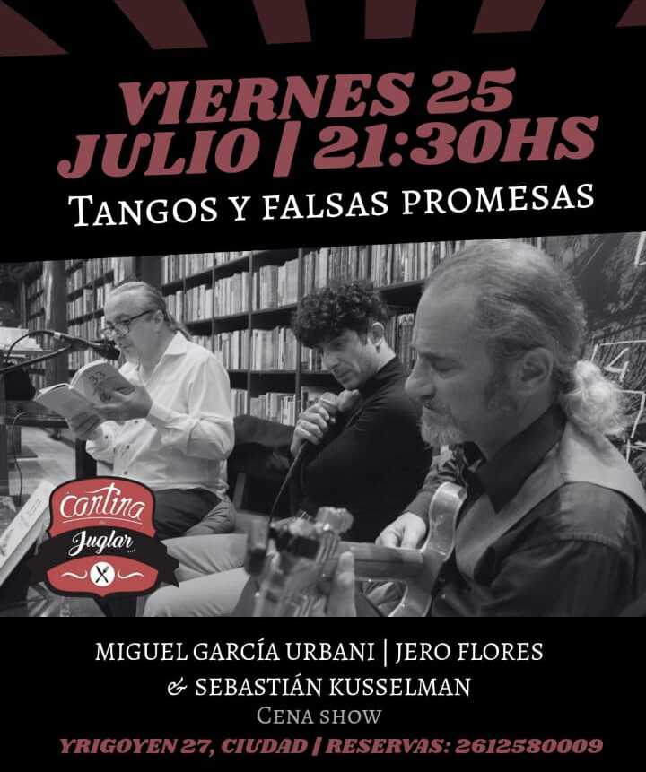 La velada contará con la participación de Miguel García Urbani, reconocido periodista, escritor y dramaturgo mendocino, quien aportará relatos, textos y reflexiones con su particular estilo entre literario y teatral. Lo acompañan dos talentosos músicos: Jero Flores en voz y Sebastián Kusselman en guitarra, quienes ofrecerán un repertorio de tangos clásicos y contemporáneos, con arreglos propios y una impronta íntima y renovada.