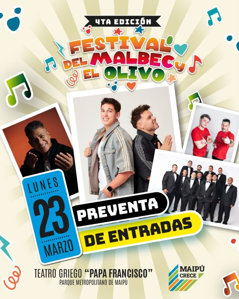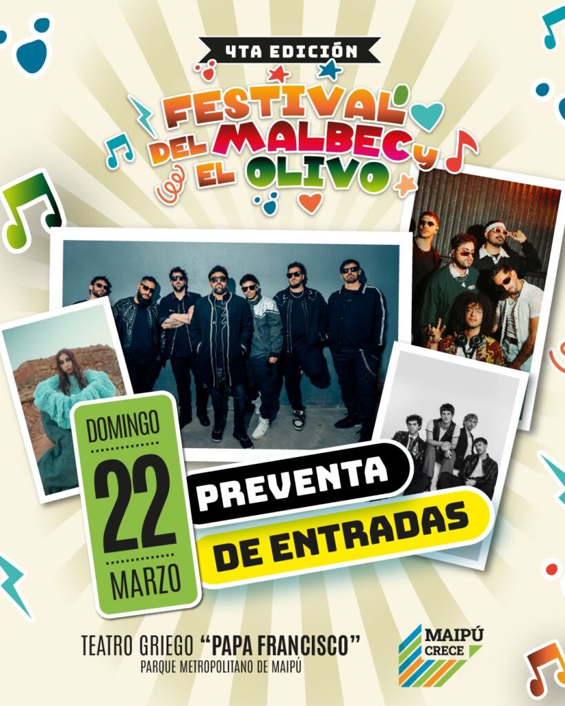 Maipú se prepara para vivir uno de los eventos más destacados de su calendario cultural y turístico con una propuesta que va mucho más allá de los escenarios. El Festival del Malbec y el Olivo fue pensado para disfrutarse de manera distinta cada noche, combinando climas musicales, públicos y sensaciones, en diálogo permanente con la identidad productiva del departamento. En ese marco, la confirmación de la grilla artística refuerza el concepto de tres noches, tres experiencias.