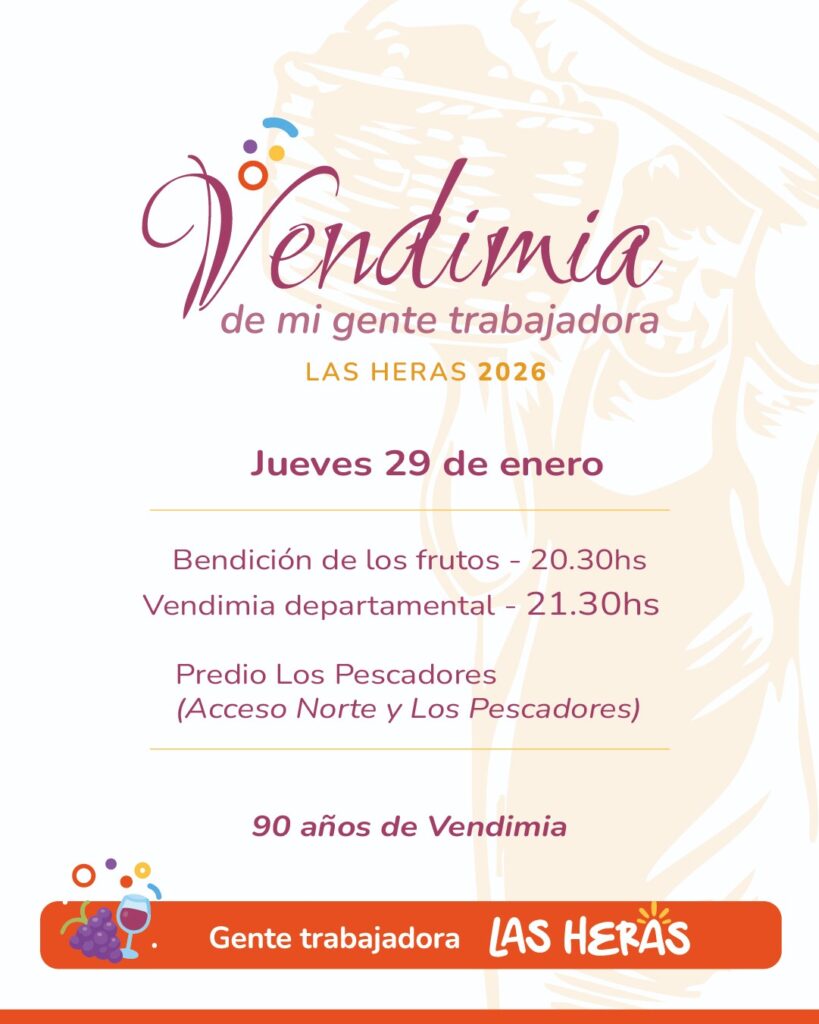 Debido a posibles contingencias climáticas y reportes del Servicio Meteorológico, se tomó la decisión de establecer una nueva fecha para la celebración de la Vendimia Departamental de Las Heras.